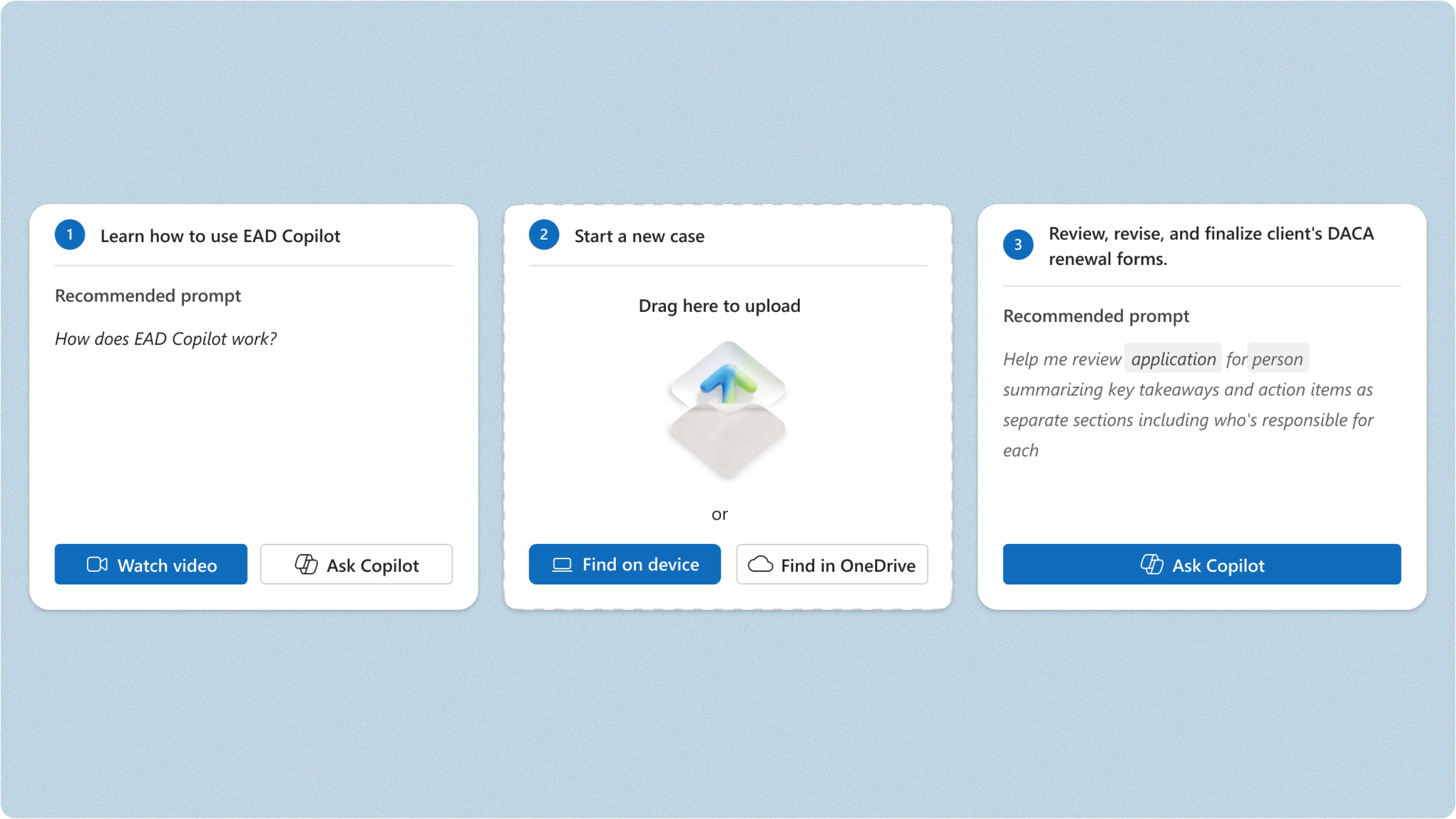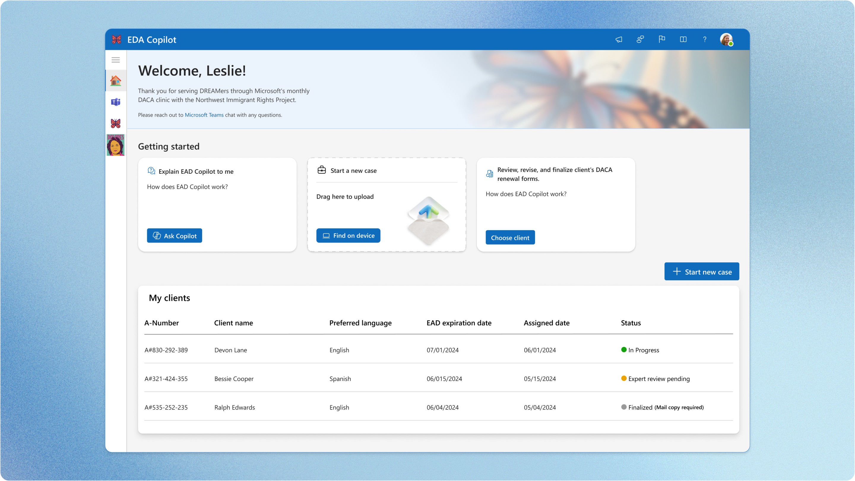 In September 2024, I participated in the Microsoft Global Hackathon project, DACA EDA Copilot, which is aimed at helping ABAProBar streamline work permit applications for migrants at the Brownsville, Texas border. As one of three Product Designers, I redesigned the homepage and file upload detail pages to improve the overall information architecture and clean up the UI.