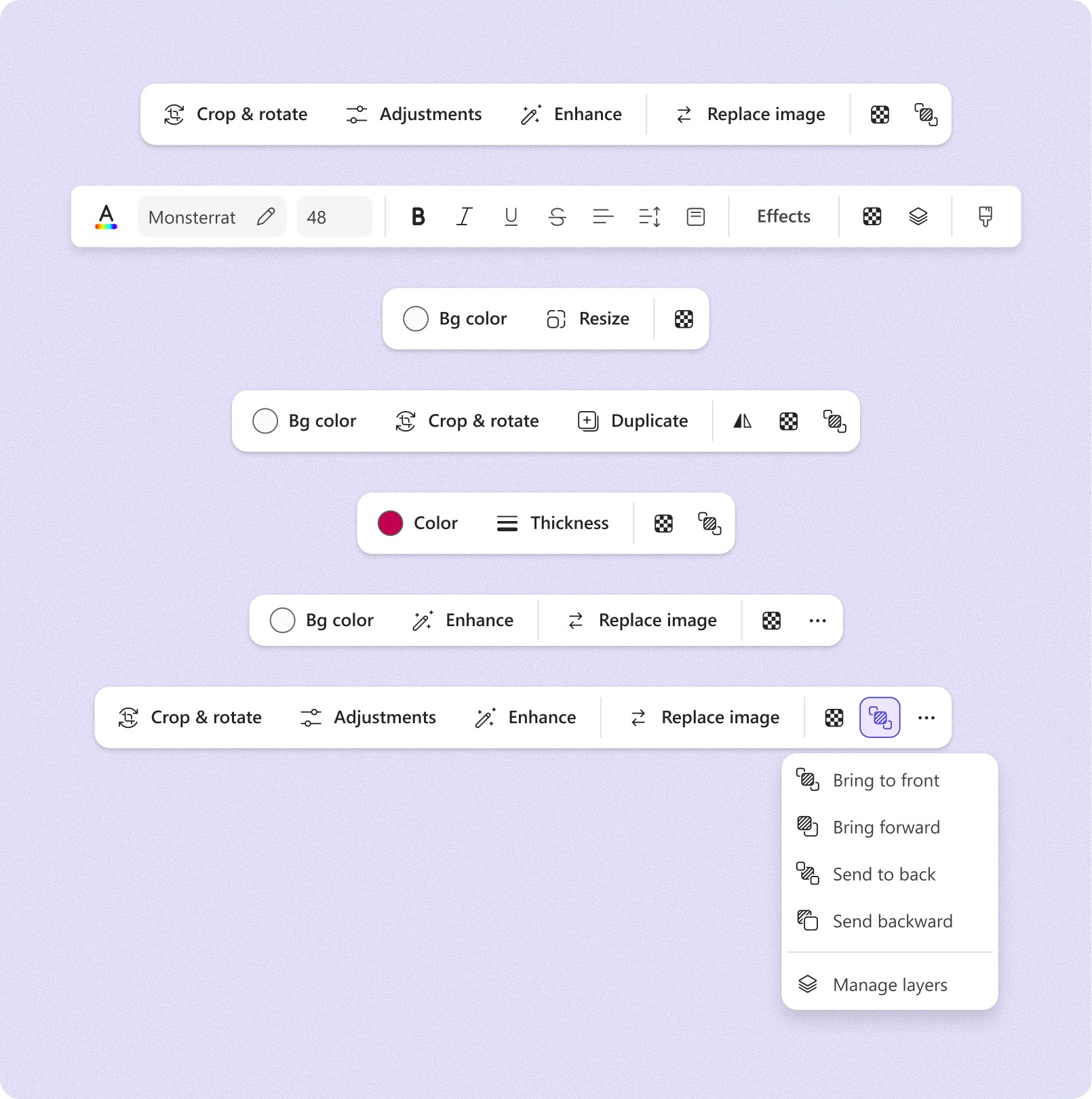 Partnering closely with PM and Engineering, I led a fast-paced three-month redesign of core information architecture patterns across the flagship Editor, Microsoft Photos, and Copilot integrations. Despite the complexities of shifting product strategy, ambiguous goals, and team changes, we delivered a simplified contextual editing toolbar, stronger responsive design foundations, clearer monetization messaging, and a shared design library to improve discoverability, wayfinding, and overall product cohesion.